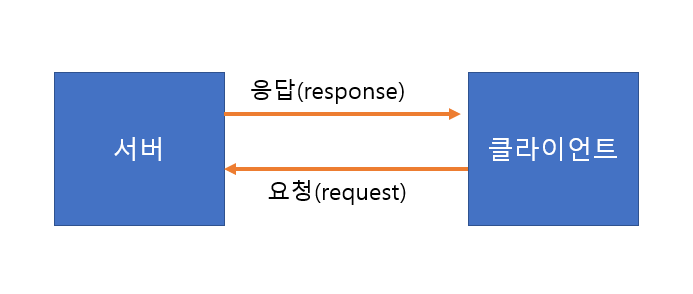 클라이언트가 서버에게 요청(request)하면 서버는 클라이언트에게 응답(response) 해준다.