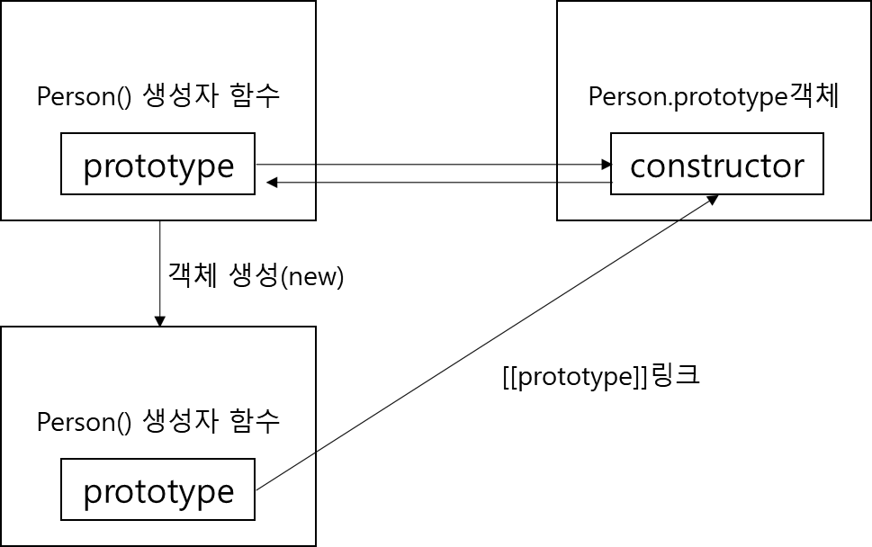 모든 객체는 자신을 생성한 생성자 함수의 prototype 프로퍼티가 가리키는 객체를 자신의 [[prototype]]링크로 연결한다.