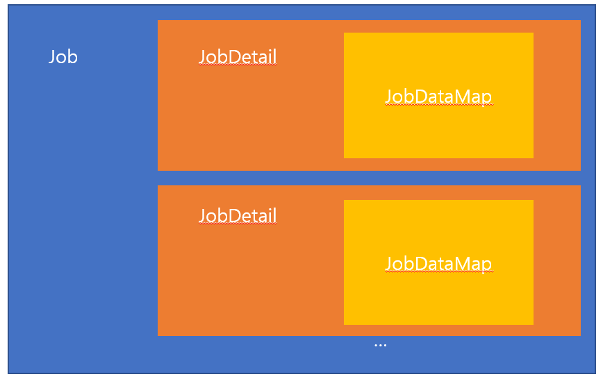 Job의 세부사항 (데이터, 식별자, 실행설정 등) 은 JobDetail interface를 구현해야한다. Job은 여러개의 JobDetail을 가지고 있고, JobDetail안에는 JobDataMap의 구조로 이루어진 데이터와, 여러 속성들이 들어있다.